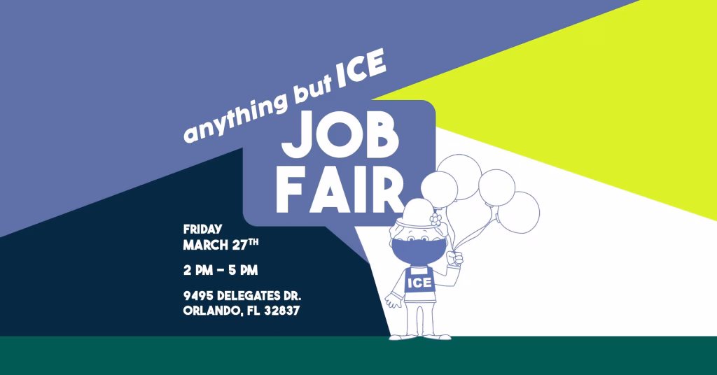 We received a press release this weekend sharing that, “A group of concerned citizens will gather outside the Orlando ICE office at 9495 Delegates Drive [GMap] this Friday, March 27, from 2 to 5 p.m. in a protest action framed as a mock job fair.”