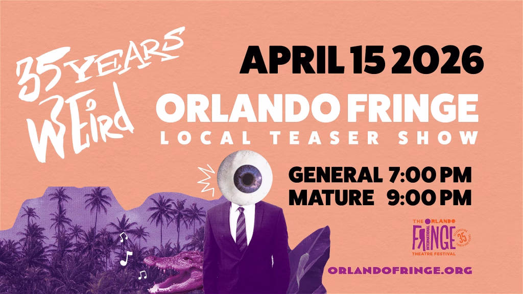 Orlando Fringe (Website) hosts its Local Artist Teaser Show this Wednesday, April 15, at the Peach Venue at Orlando Family Stage, kicking off a busy stretch leading into the 35th Annual Orlando International Fringe Theatre Festival at Loch Haven Park.